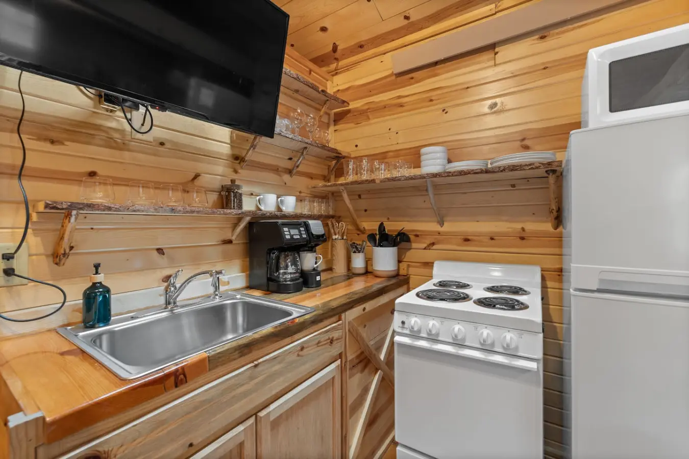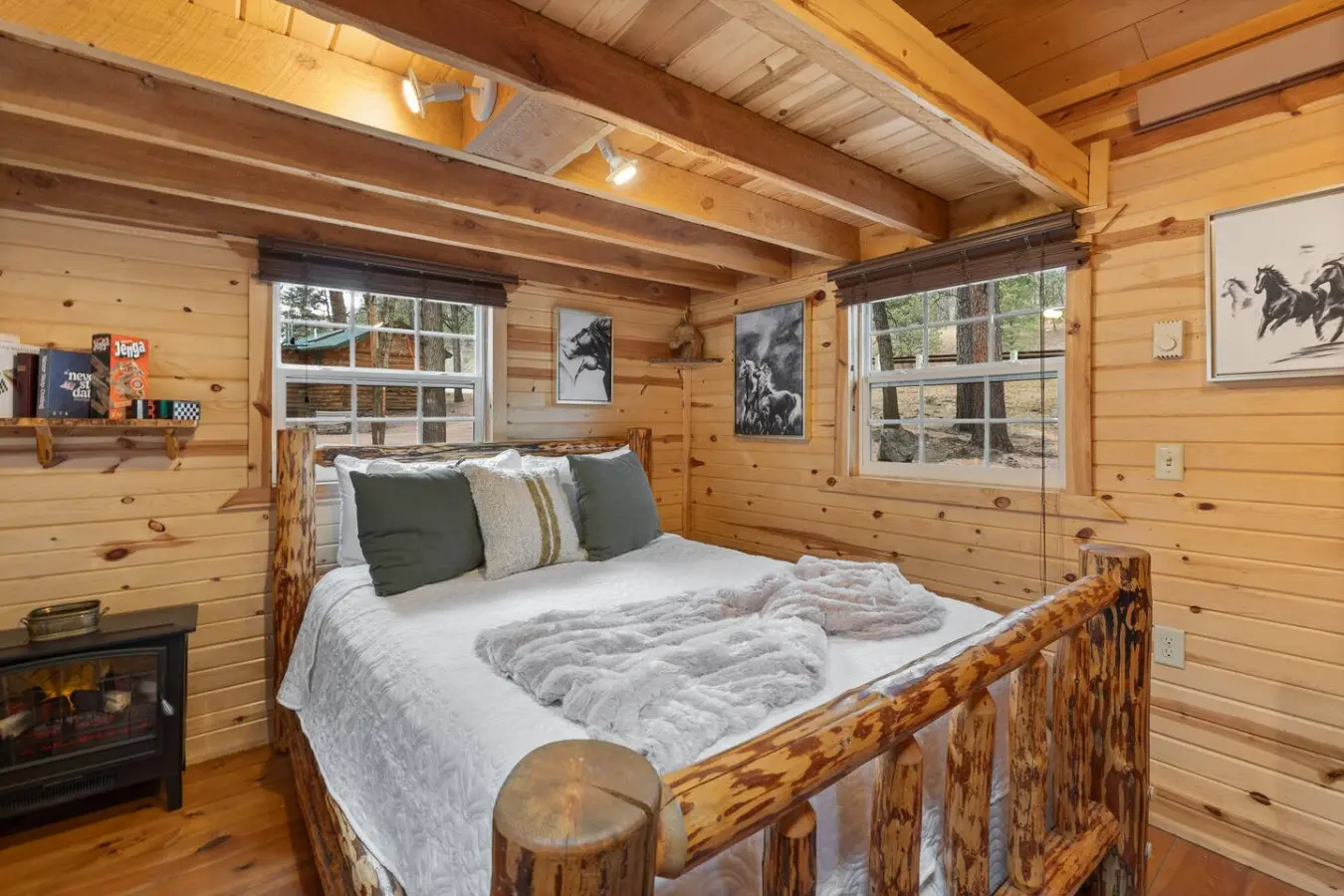 The cabin is equipped with a hair dryer, air conditioning, and heating to ensure a comfortable stay. You’ll enjoy the luxury of premium 100% cotton sheets, soft and thick bath towels, and complimentary toiletries. Upon arrival, we provide 3 rolls of toilet paper, 1 roll of paper towels, and a set of shampoo, conditioner, and a bar of soap.