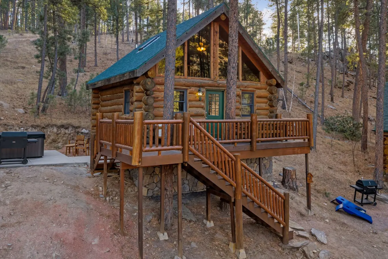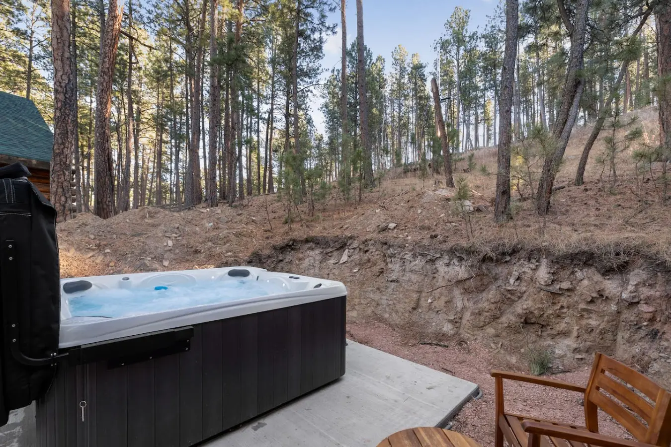 Guests can enjoy a full bathroom with a tub and shower, a well-equipped kitchen for easy meals, and relaxing outdoor amenities such as deck seating, a charcoal grill, a private hot tub, and access to a community firepit. Set among nature with frequent wildlife sightings, this Black Hills vacation rental is ideal for a peaceful mountain retreat.