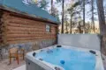 Enjoy an outdoor living area with a cozy seating arrangement of chairs and a table, a charcoal grill, and a relaxing hot tub. Take in breathtaking views as you stroll along peaceful pathways, enjoy a quiet moment, or unwind on your private deck. Guests are also welcome to gather and relax around the community fire pit.