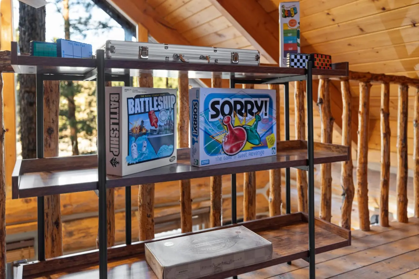 The cabin offers a warm and comfortable setting with Wi-Fi, a TV, and a plush sofa couch, perfect for relaxing after a day exploring the Black Hills. Gather for meals and conversation at the six-seat dining table, or enjoy quality time with a selection of board games. The bathroom includes a shower and essential amenities to ensure a comfortable and convenient stay.