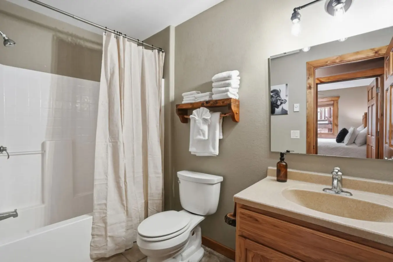 The cabin is equipped with a hair dryer, air conditioning, and heating to ensure a comfortable stay. You’ll enjoy the luxury of premium 100% cotton sheets, soft and thick bath towels, and complimentary toiletries. Upon arrival, we provide 3 rolls of toilet paper, 1 roll of paper towels, and a set of shampoo, conditioner, and a bar of soap.