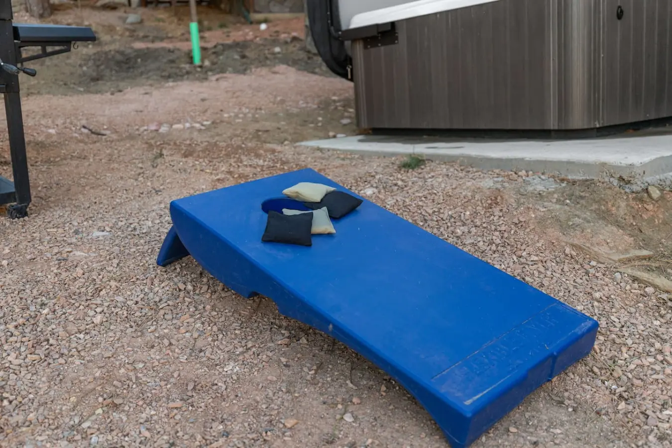 Inside, enjoy modern comforts including Wi-Fi, a TV, and a comfortable sofa couch for relaxing after a day of adventure. Gather around the six-seat dining table for meals or quality time, or enjoy some family fun with the provided board games. The bathroom is thoughtfully equipped with a toilet and shower to ensure your comfort throughout your stay.